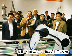 签约仪式开始前,中国振华集团董事长、党委书记杨林,总经理付贤明一行在中电sunbet申搏官方网站总经理陈宽义,副总经理梁生元、鲁清等陪同下参观了sunbet申搏官方网站装备和sunbet申搏官方网站信息。sunbet申搏官方网站总经理夏德传,副总经理刘坤、郭庆、胡回春、邵波参加了参观和座谈活动。夏德传向来宾介绍了sunbet申搏官方网站近年来的发展情况。在参观过程中,刘坤和郭庆分别介绍了sunbet申搏官方网站自动生产线、工业机器人和sunbet申搏官方网站“智慧城市”建设取得的成效。杨林对sunbet申搏官方网站工业机器人和轨道交通设备表现出浓厚的兴趣,询问了核心模块和市场销售方面情况。座谈时,杨林对sunbet申搏官方网站装备提供的智能制造工厂建设方案非常满意,希望进一步加强合作,徐国飞对此表示肯定和支持。